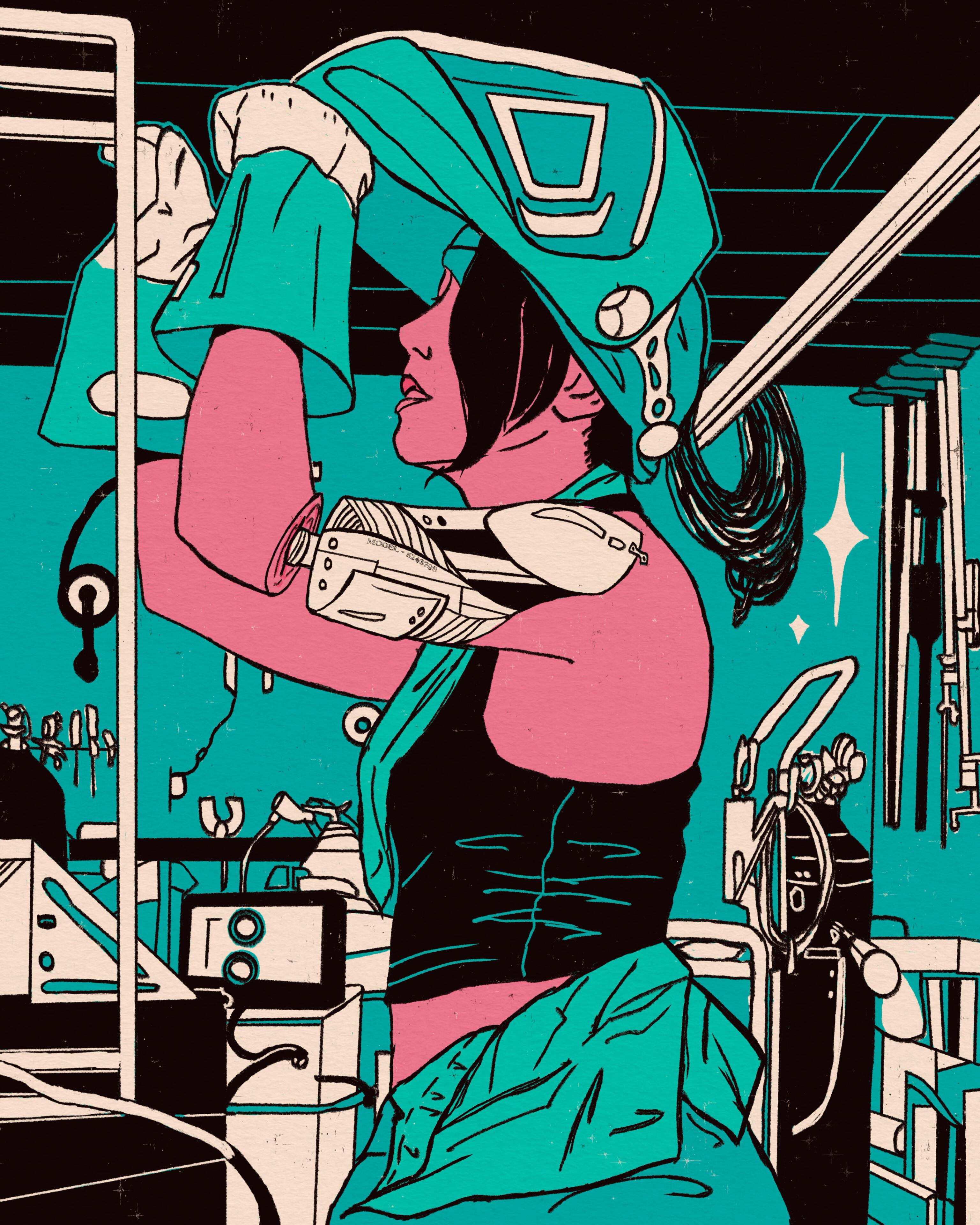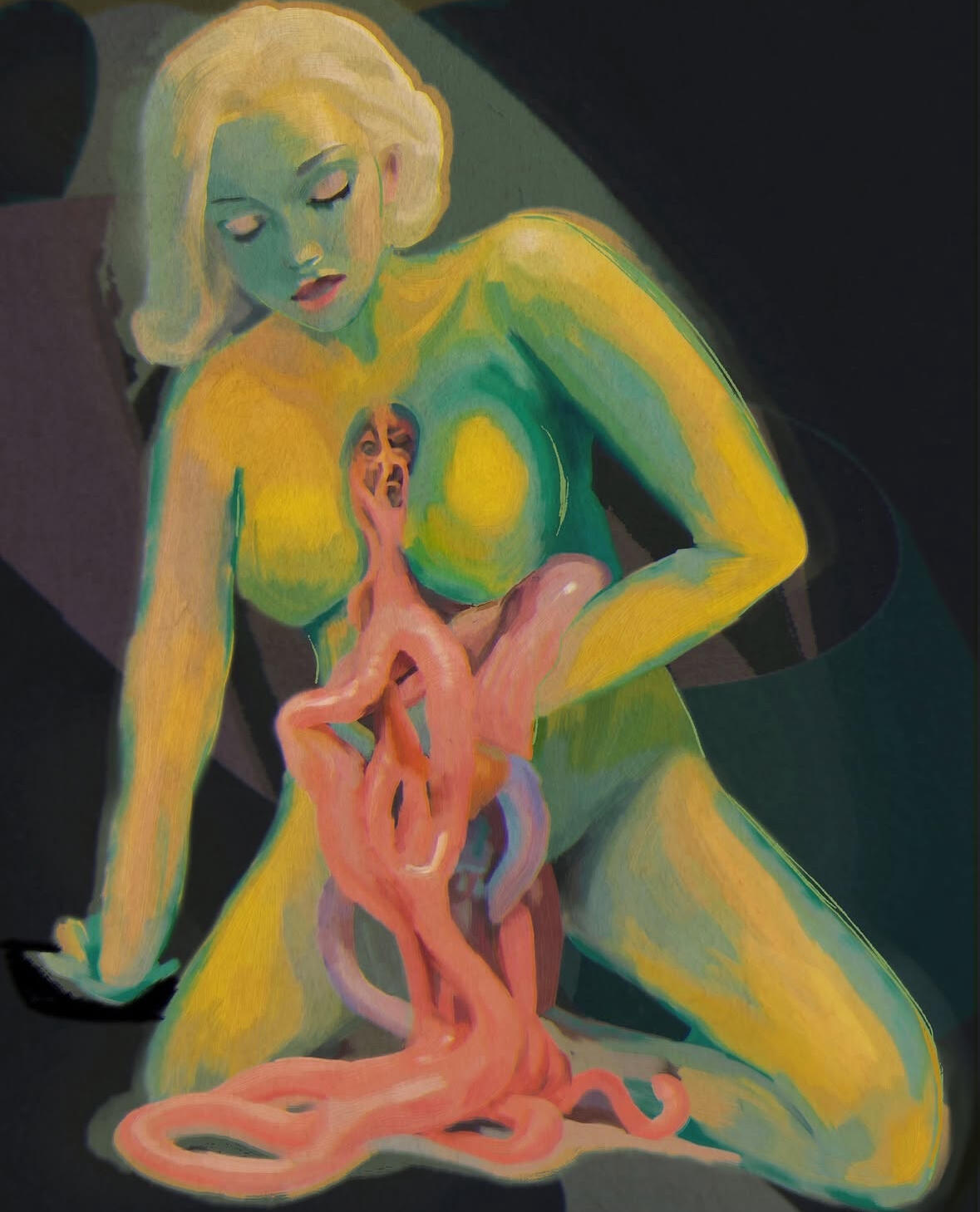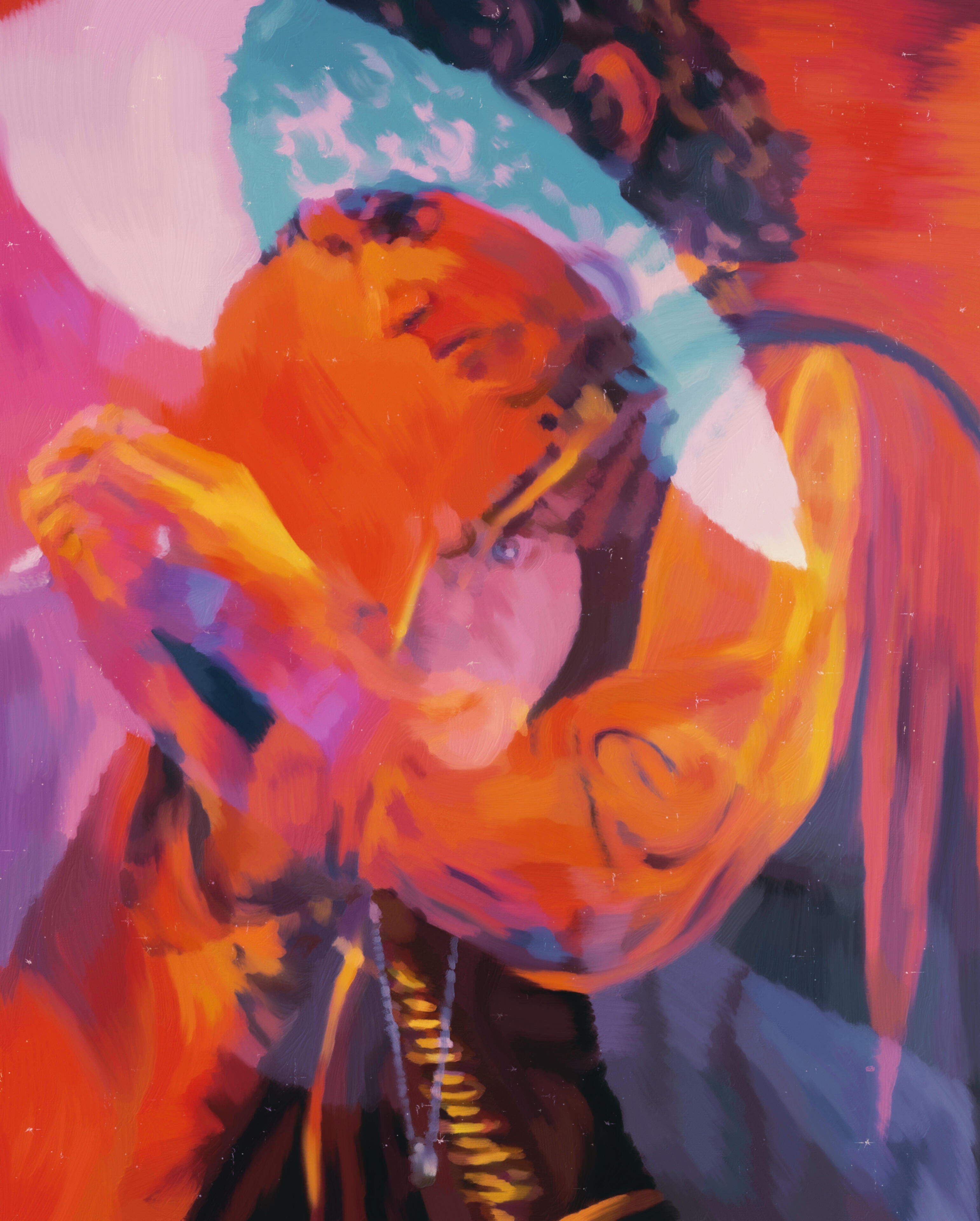 Paintings are 16x20in, and created with digital oil paint and acrylic gels on loose canvas. Illustrations are 8x10in, and created with digital and traditional inks on archival quality resin coated paper.
